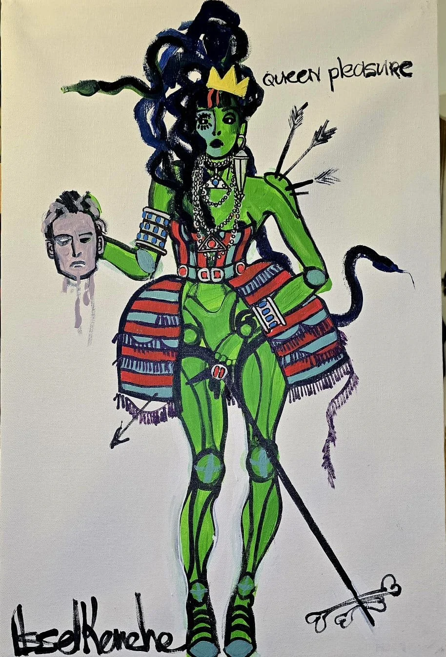 Assel Kenzhetayeva is an artist from Kazakhstan. She is both a painter and a fashion designer. Her exhibition ‘Queen Pleasure’ is taking place at Oner Corner gallery, Almaty in March 2026. @asselkenzhe_art